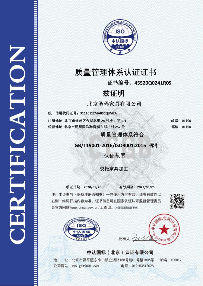 北京圣瑪家具有限公司是以設計研發(fā)、生產、銷售、服務為一體的專業(yè)化辦公家具制 造企業(yè);主要經營辦公家具、校園家具、實驗室家具、酒店套房、全屋定制類等家具。 公司成立于 2017 年,生產基地位于天津市蘆臺經濟開發(fā)區(qū)華澳盛世家具有限公司院 內,占地面積約 10000 平米,擁有員工 100 人左右,其中高級技術人員達 15%以上。 公司采用了南興、先達系列等先進生產設備,建立專業(yè)流水線,具備先進的生產及加 工能力。公司設有專業(yè)的產品設計部、運營部、質檢部等,提供專業(yè)的 CAD 平面圖、立面 圖級效果設計圖紙。 使用優(yōu)質的進口原材料及配件;嚴把進貨渠道,所用材料符合國家環(huán)保標準要求。款 式上依據(jù)人體工程學原理,追求多樣化的設計風格。按照 “ISO900/ISO14001 族標準” 的 要求,嚴格控制每一個環(huán)節(jié)。 并本著“以質量求發(fā)展,向管理要效益,顧客滿意為焦點,持續(xù)改進,共筑偉業(yè)”的 宗旨方
